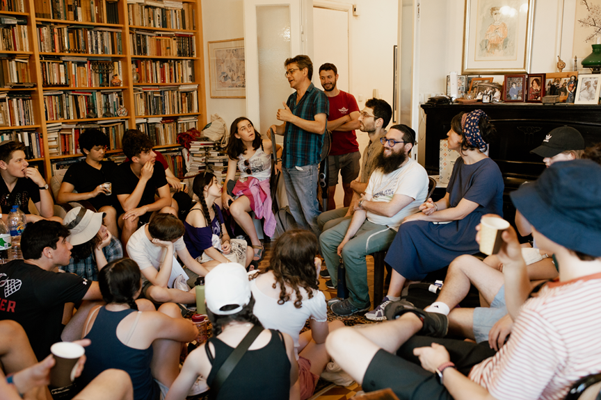 9:00 am: Opening Circle. We open the morning with two fellows leading an activity (a game, a text, a story). The Manchim (Facilitators) then frame the day, and together we read and analyze the poem “Tourists” by Yehuda Amichai and consider our position as visitors with various relationships to Israel.
